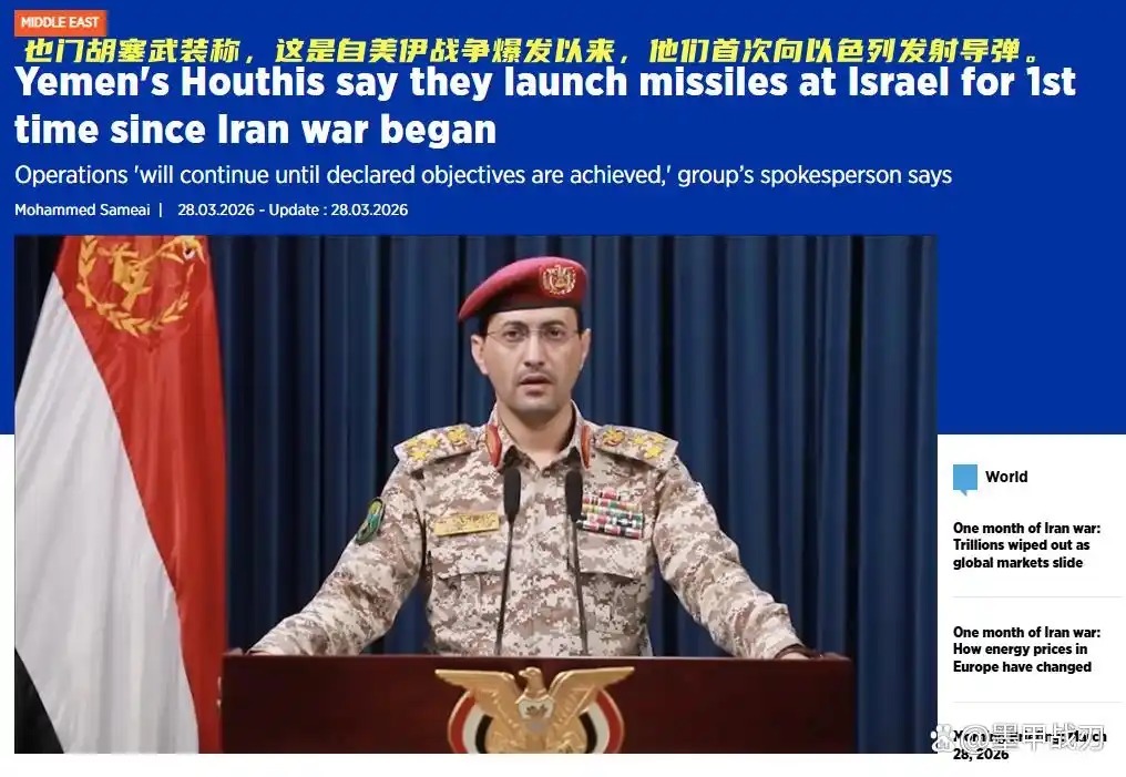 就在今天也门胡塞武装突然出手、向以色列发射了弹道导弹,这是自美伊冲突爆发以来该组织首次直接对以色列发动攻击。