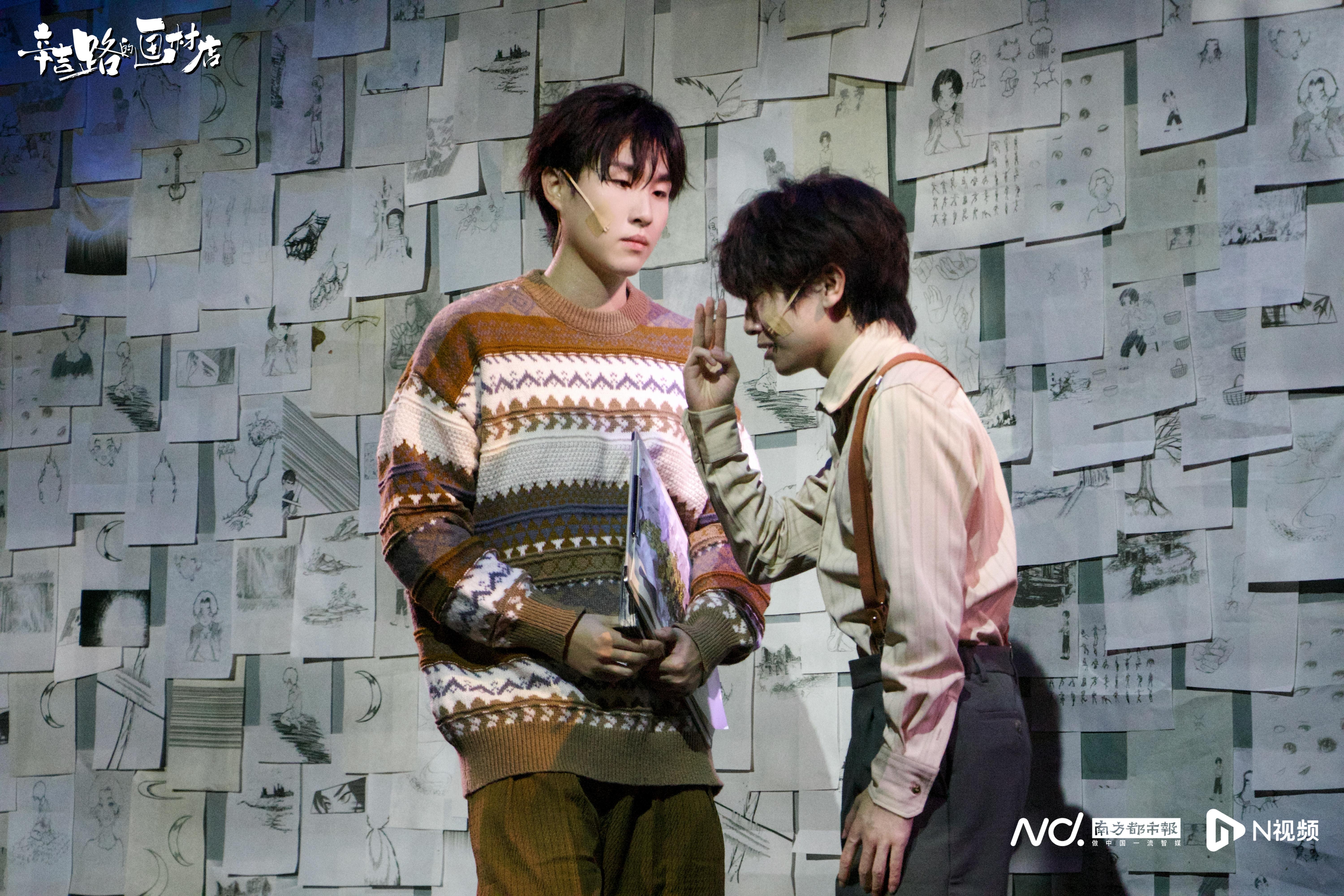 主创团队用心打造原汁原味的真实“画材店”,每一个角落都充满了细节,银杏树、漫画手稿、手办等,将观众迅速带入主角的生活情境中。错落分散的舞台区域使演员的活动范围更加灵活,为观众带来了全方位环境式的观剧体验。