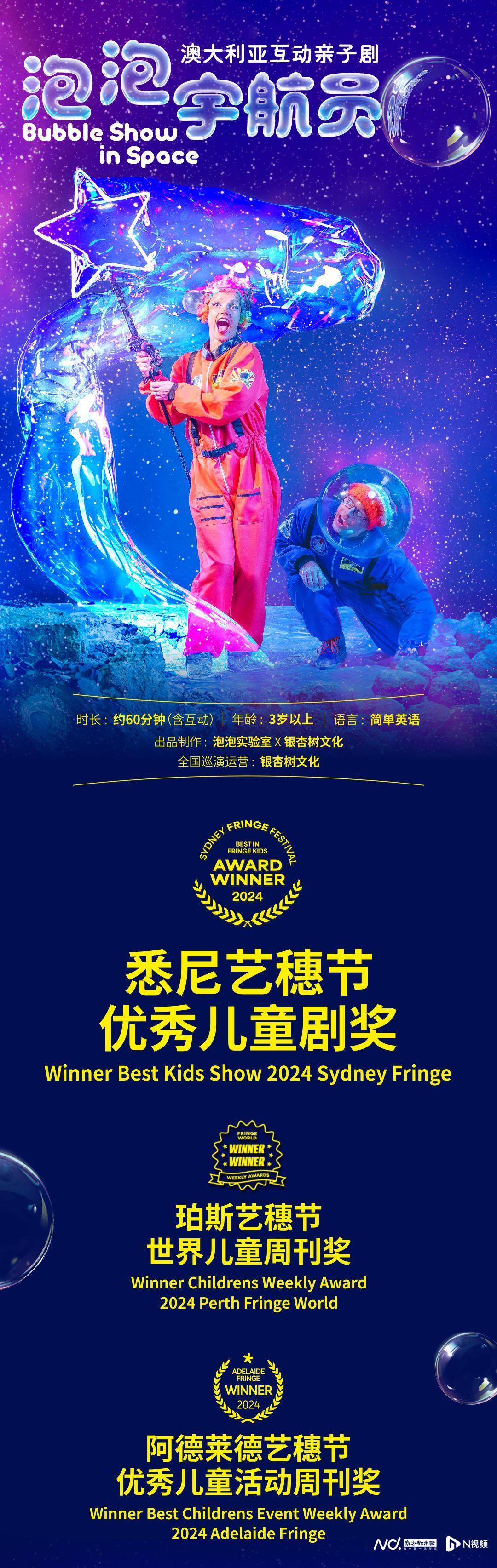 你想和孩子一起飞向太空吗?想钻进泡泡里,触摸星星,和外星人击掌吗?现在,机会来了! 澳大利亚原版互动亲子剧《泡泡宇航员》,全场60分钟欢乐互动,适合3岁以上适龄,简单英语演出,轻松融入,快乐无边, 三大洲、20国、超3000场演出验证,三度荣获国际艺穗节“优秀儿童剧奖”。